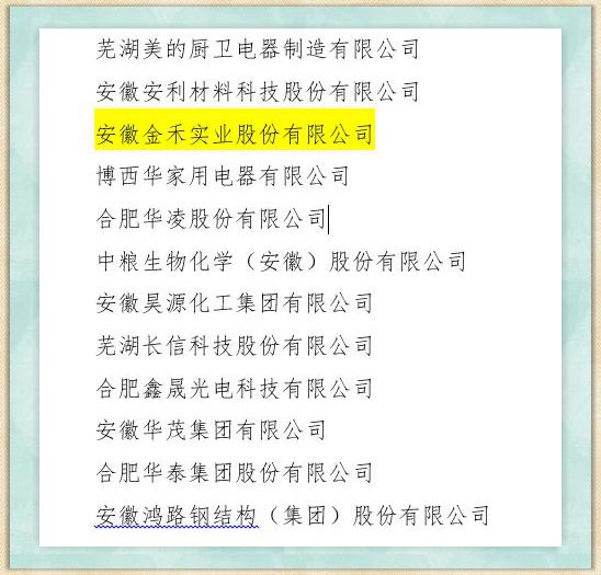 Jinhe Industrial Was Selected as One of 2018 Top 50 Enterprises in Comprehensive Strength in Manufacturing Industry in Anhui Province